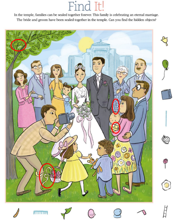 Suits dresses ribbons and flowers introduce repeating shapes. Hidden objects blend into these patterns easily especially when colors match.