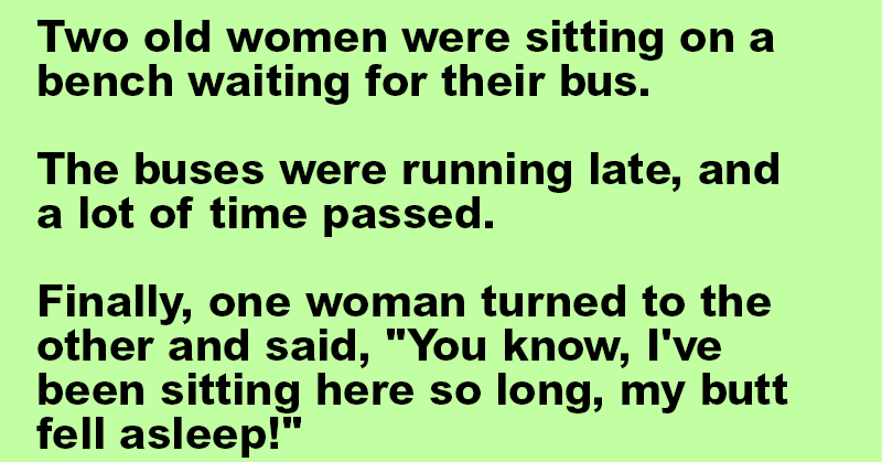 Finally, one woman turned to the other and said, “You know, I’ve been sitting here so long, my butt fell asleep!”
