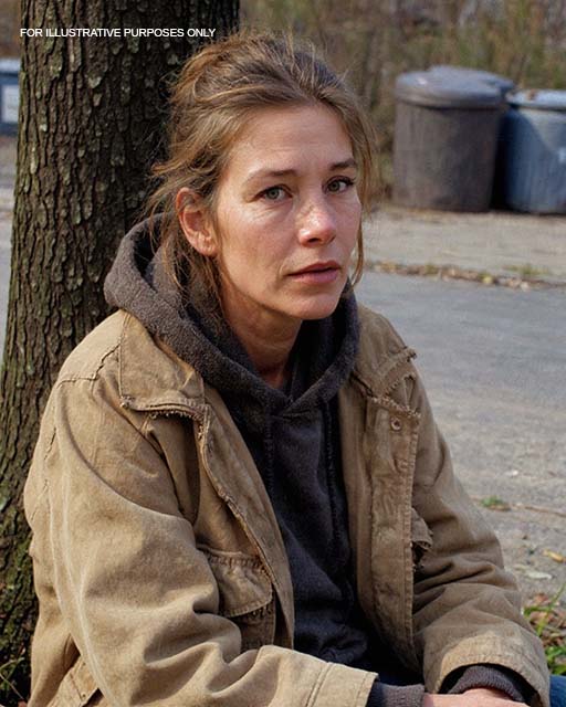 I was cutting across the small park near our old elementary school when I saw a woman sitting on a bench, knees pulled to her chest, arms wrapped around herself in a way that made her look almost folded inward. Her hair was matted from the wind, her jeans torn at one knee, and the sweatshirt she wore was far too thin for the bitter November morning.