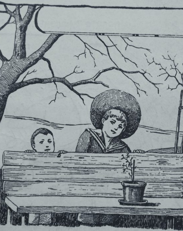 Illustrations have always been a powerful way to evoke emotions, tell stories, and capture the essence of a moment in time. The image before us—a charming illustration of two children peering out from behind a wooden bench—takes us back to a simpler era, reflecting the innocence and playfulness of childhood. This image, with its timeless appeal, invites us to explore how early illustrations like this shape our understanding of childhood, creativity, and nostalgia.