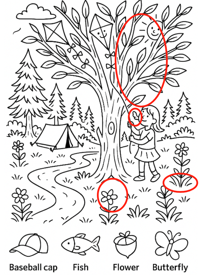 Ever get trapped in a daydream while staring at a peaceful campsite illustration? Hidden object puzzles snap you right into the moment, tuning your brain into laser focus and delivering that “aha!” rush when you spot each sneaky item. Today’s woodland scene—complete with a majestic tree, winding creek, and a cozy tent—hides four everyday objects: a baseball cap, a fish, a flower, and a butterfly. Ready to elevate your powers of observation? Let’s gear up and dive in!