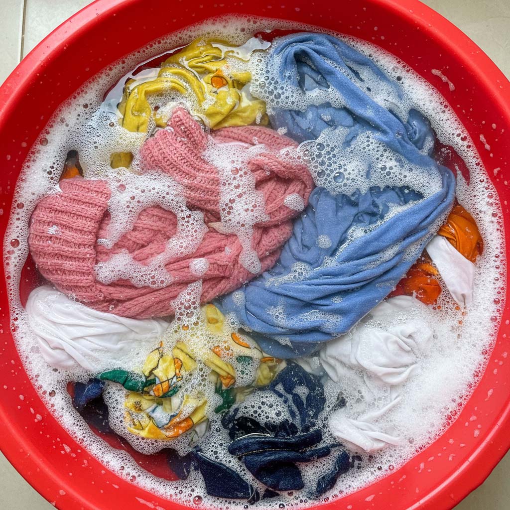 Place the shrunken item into the solution. Let it soak for 10–15 minutes so the fibers loosen and become easier to reshape.
