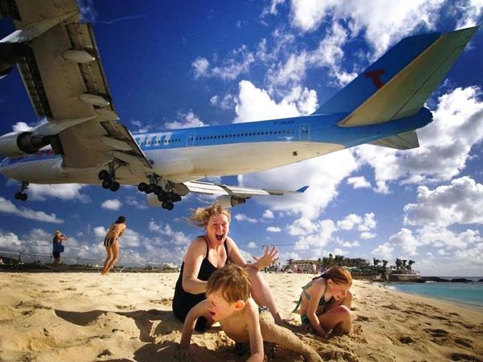 Princess Juliana Airport in Saint Martin is known for its unique approach over Maho Beach.Thrill-seekers gather to feel the blast of jet engines as planes land just feet overhead. However, safety concerns have led to new regulations limiting access to the beach during aircraft landings and takeoffs.