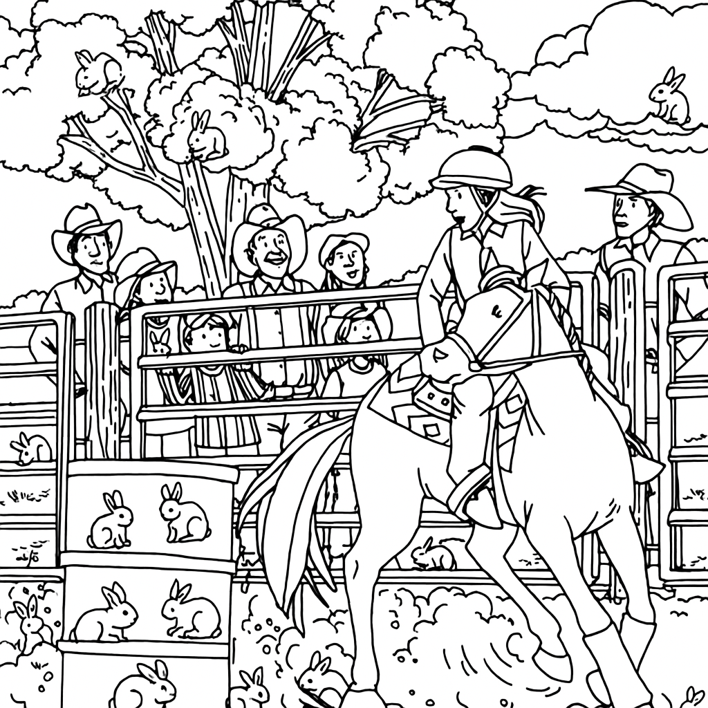 In many ways, the rabbits symbolize fertility, growth, and renewal—fitting themes for a rodeo, where the cycle of nature and farm life plays a central role. Their presence softens the rugged setting, reminding us that even in the fast-paced thrill of a competition, nature always finds its way to join in the story.