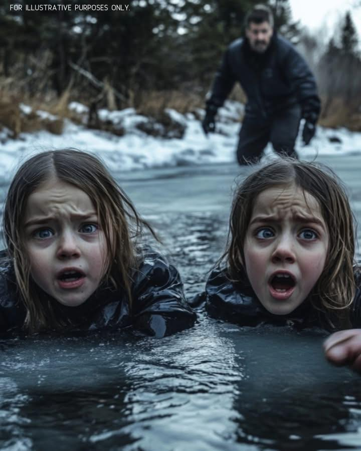 The surface split open beneath the girls. One scream—piercing and terrified—and then both disappeared into the black, freezing water.