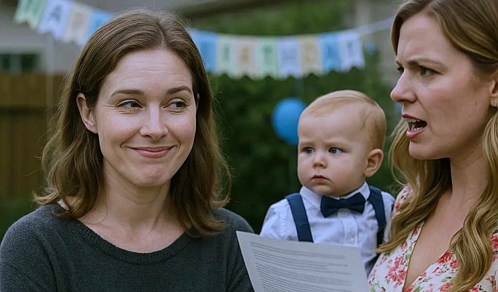 My name is Bridget, and at 34 years old, I never expected to be a widow. Three months ago, I lost Adam, my husband of 11 years, to a sudden aneurysm. Just days after his funeral, I dragged myself to my nephew Lucas’s first birthday party, where my sister Cassandra dropped a bomb. She announced that Lucas was actually Adam’s son, showing everyone a will claiming half of my $800,000 house. What she did not know was why I could barely hold back my laughter.
