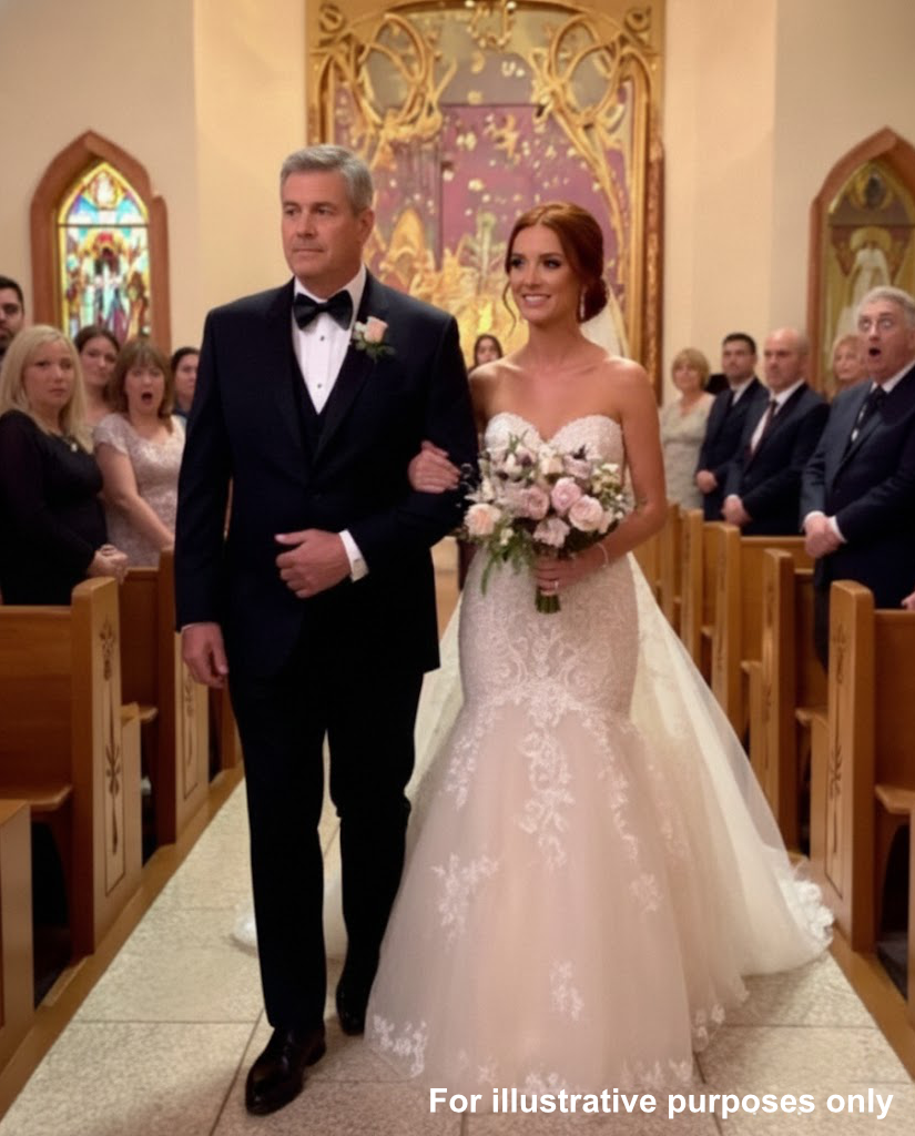 “Daughter,” he said, softer, like he’d rehearsed it. “This is our moment. Let me make it right. Let me walk you down the aisle.”