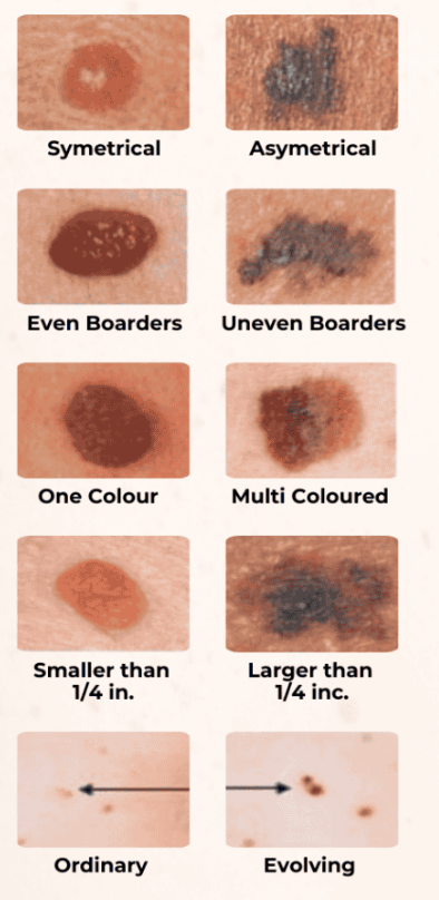 In order to help distinguish between harmless moles and those worth investigating, dermatologists recommend the ABCDE rule :