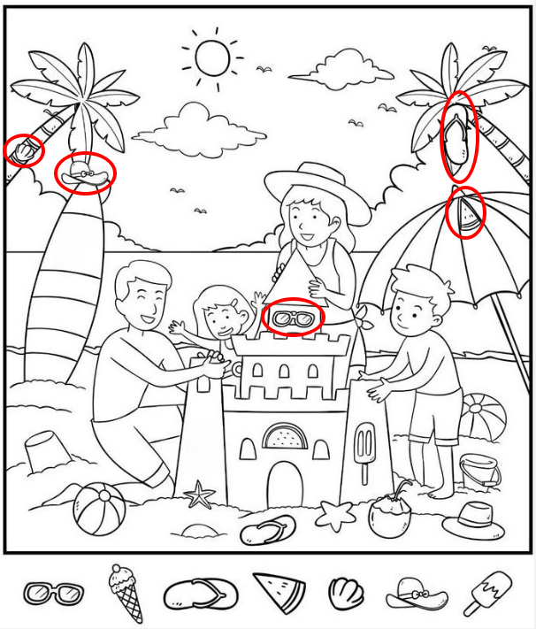 Would you like me to expand this into a hidden-object puzzle style narrative, where I guide readers to spot fun details in the picture like the starfish, popsicle, flip-flops, and sunglasses?