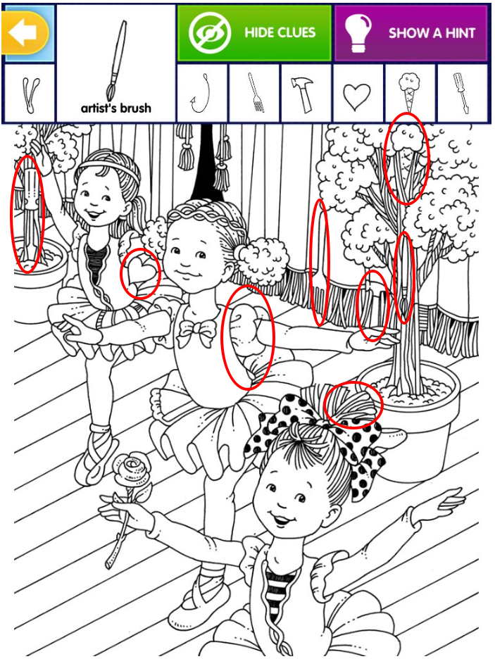 • Check symmetry.Many hidden objects blend into repeated patterns, like bows, floorboards, or curls in hair.