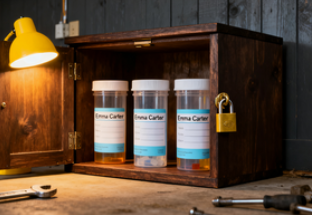 The locked cabinet in the garage has medication bottles prescribed to someone named… See more The locked cabinet in the garage has medication bottles prescribed to someone named… See more Read More