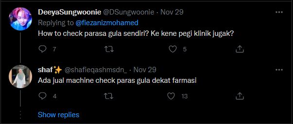 Some netizens replied to her aid explaining that you can get the machine at pharmacies or you can just go to pharmacies and ask them for a blood sugar test, in which they will charge you a certain amount.