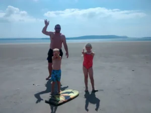 Gareth Gravell with his children on the beach, Photo Credit: Gareth Gravell/Facebook