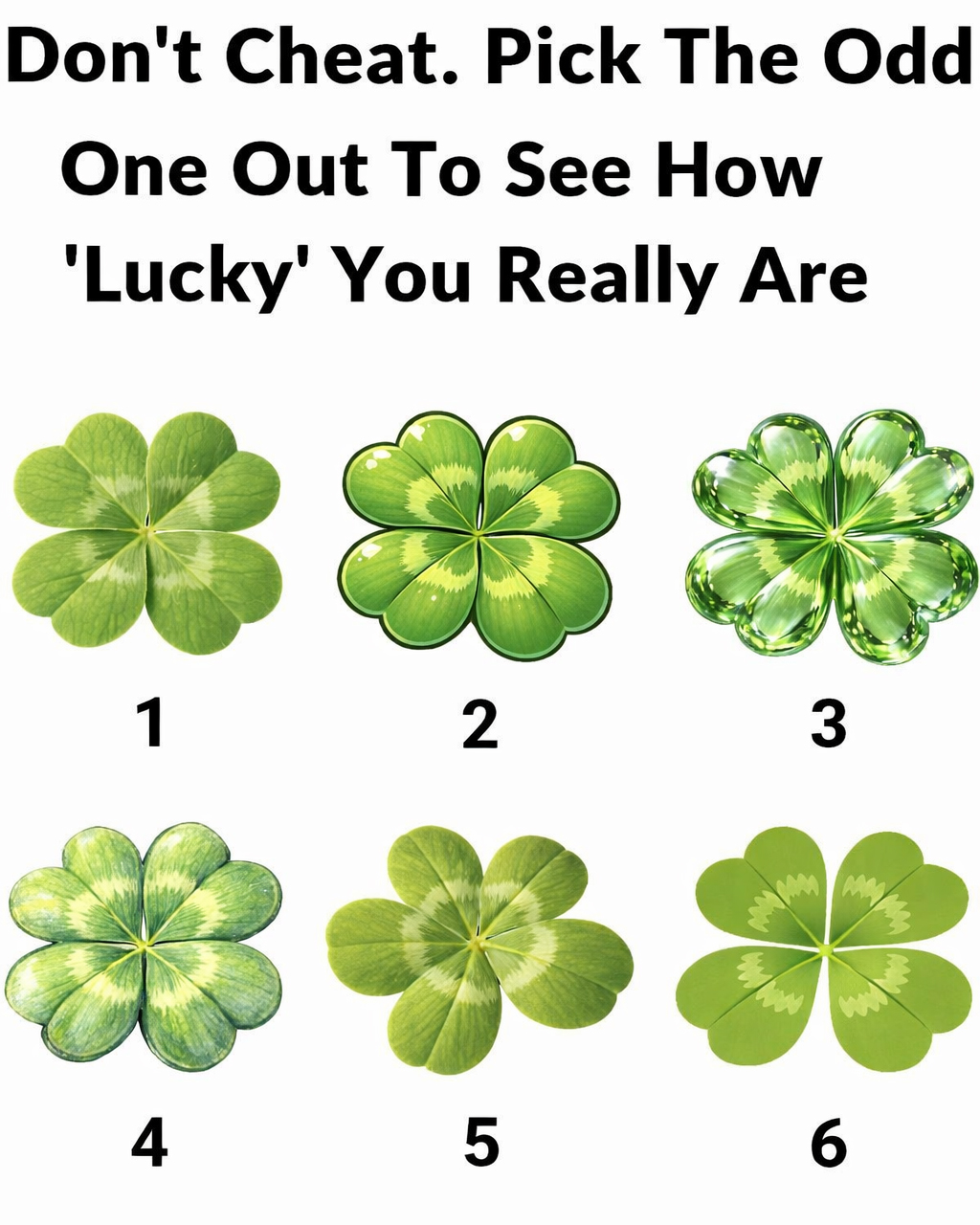 👉 Pick the one clover that seems like the “odd one out.”