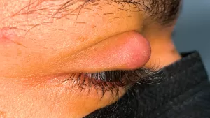 - Pain or tenderness in the eyelid.