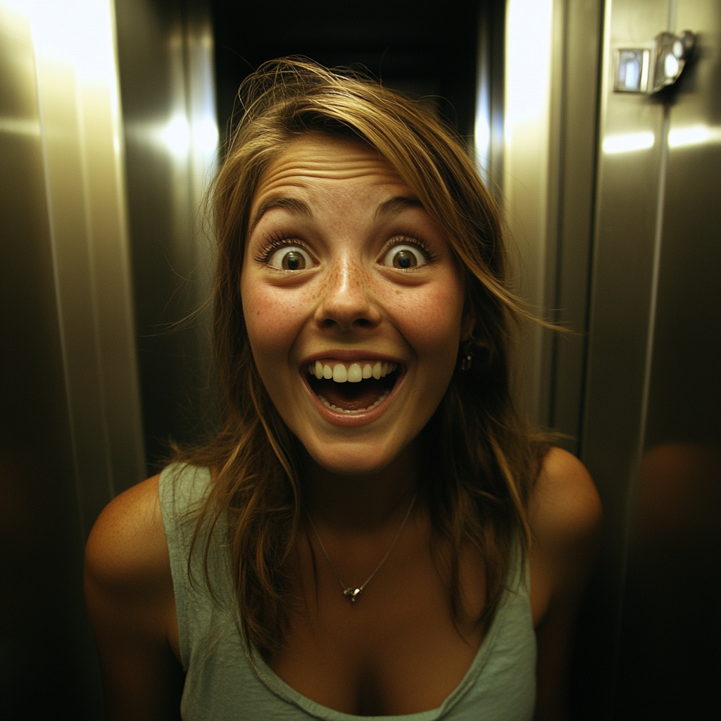 A smiling woman in an elevator | Source: Midjourney
