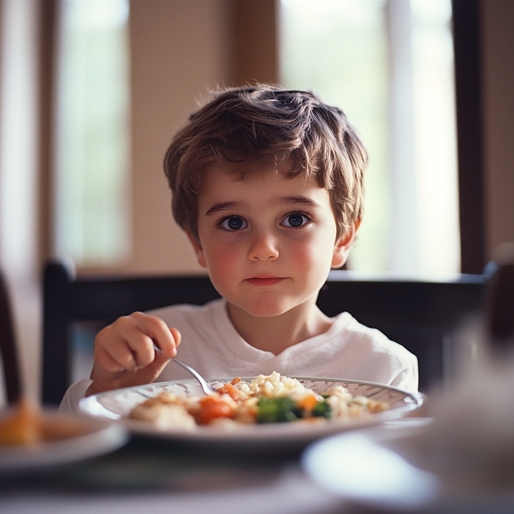 A boy eating dinner | Source: Midjourney