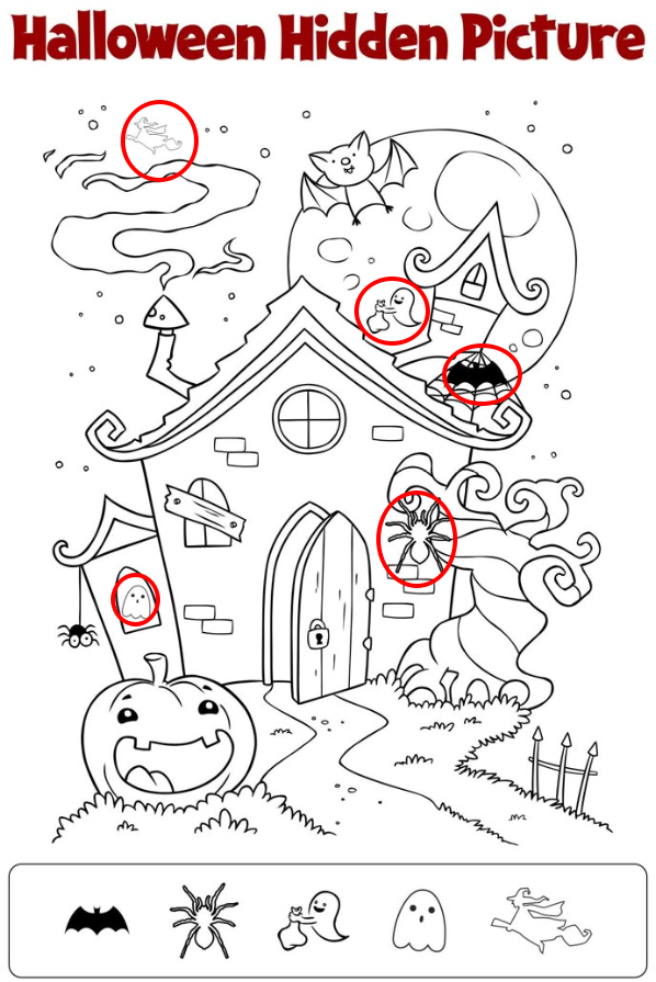 A Haunted House Puzzle: Discovering Hidden Surprises in a Spooky Halloween Scene