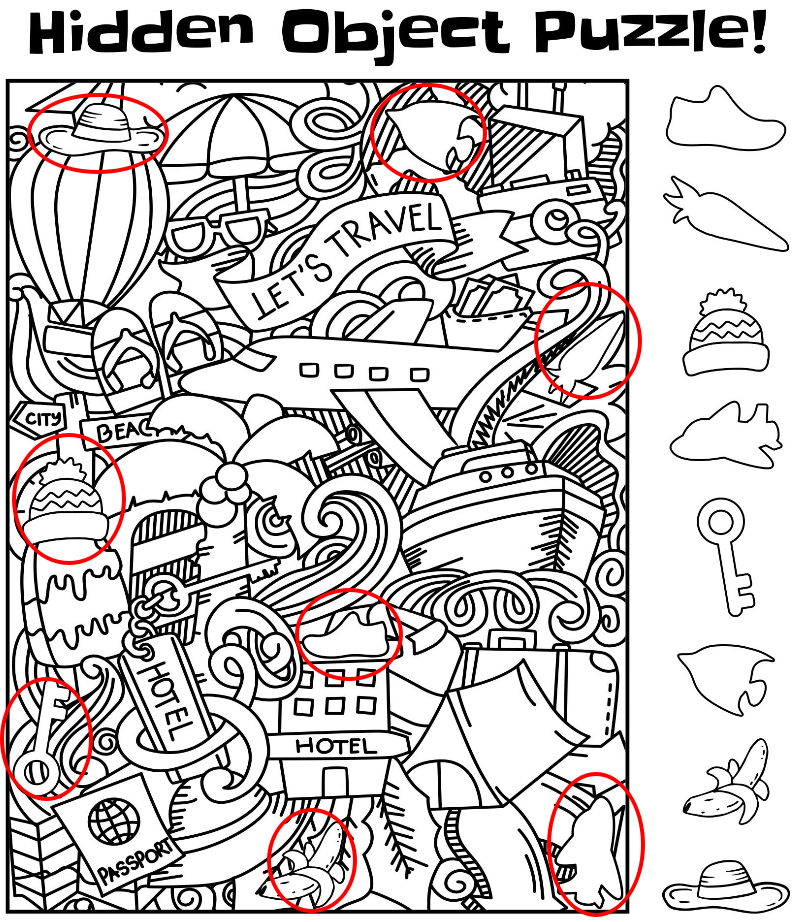 - Use the Story.Think about what belongs in a travel scene — maps, luggage, keys, tickets. Imagining the narrative helps you predict what’s hidden.