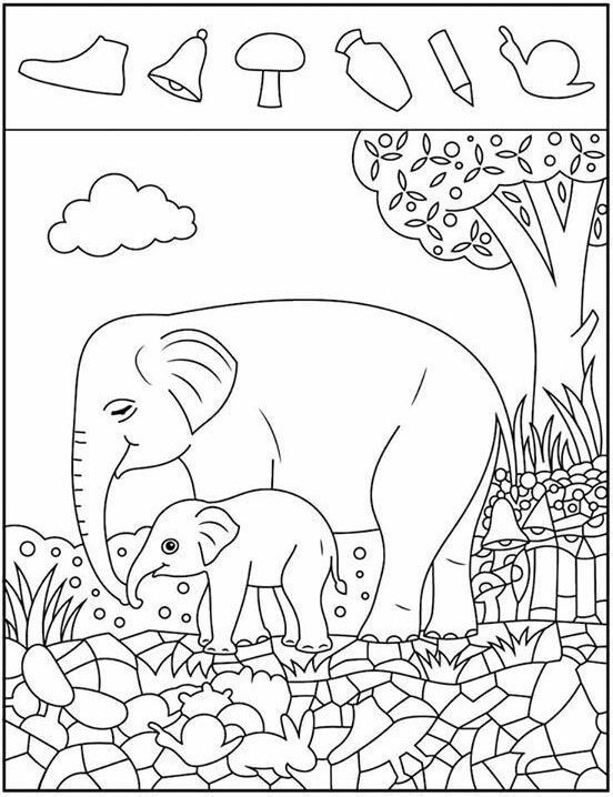 Children love the elephants. The baby elephant feels friendly and relatable. Finding hidden objects becomes a game filled with small victories.