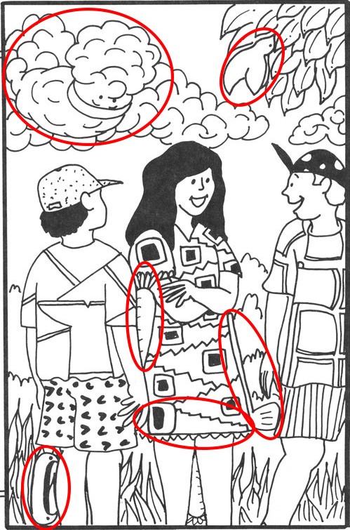 In the case of the image above, a group of kids and a dog enjoy a sunny day, but what makes the picture exciting is the hidden objects or animals that are carefully placed within the scene. Whether it’s a playful dog hidden in the trees or a cloud shaped like a hidden face, the task is to locate these elusive objects.