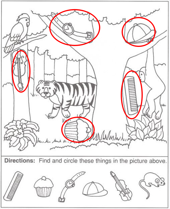 This isn’t just a random search. The puzzle gives you a mission: find and circle specific items hidden in the picture. Sounds easy, right? Not so fast.