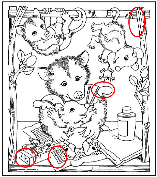 A Playful Possum Puzzle: Discovering Hidden Objects in a Family Scene