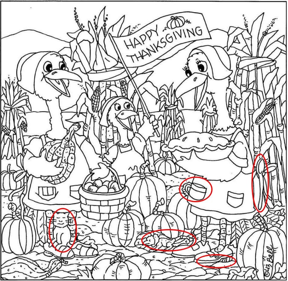 But if you pause your holiday daydream and sharpen your eyes, you’ll spot that this picture is a puzzle in disguise. The corn isn’t just corn. The pies aren’t just pies. And those leaves? They might be covering more than just the ground.