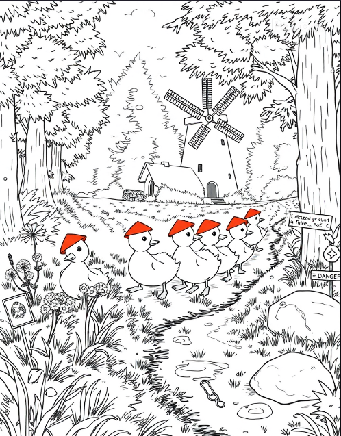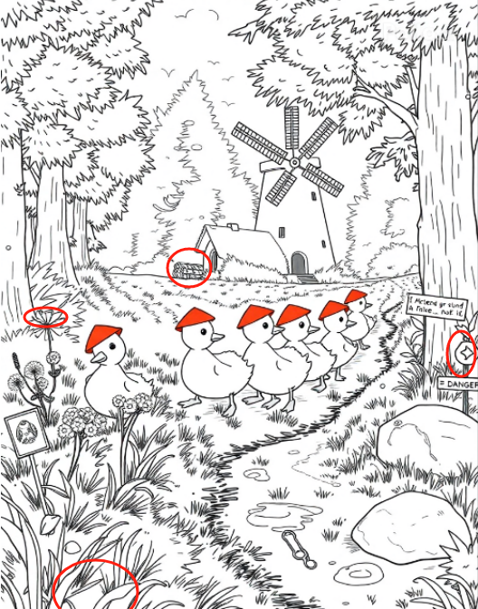 At first glance, this might look like just a simple black-and-white drawing—but don’t be fooled! Hidden within the intricate design are several cleverly concealed objects waiting to be discovered.