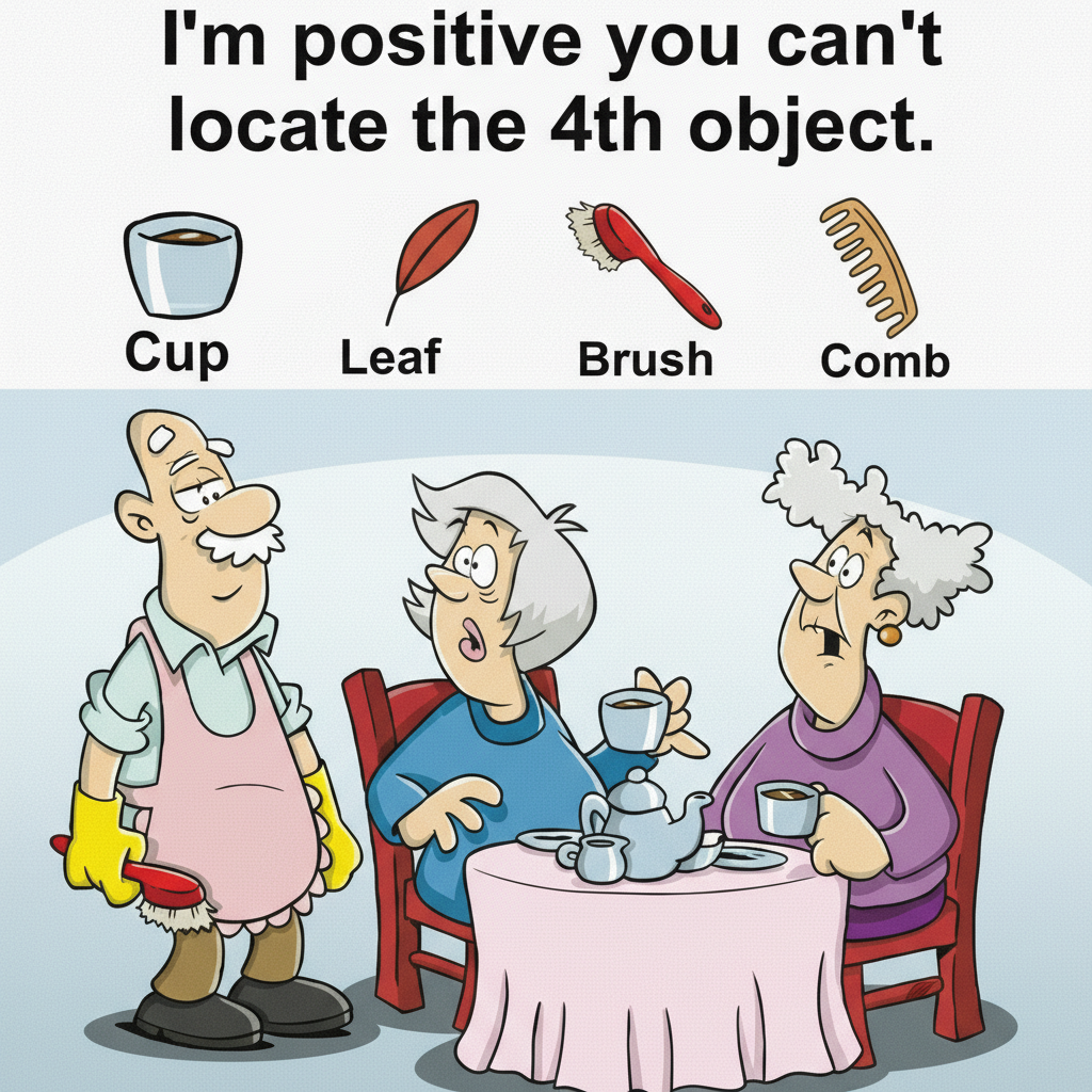 When you look at a tea scene, your brain automatically categorizes elements. Cups belong on tables. Teapots belong at the center. Chairs sit beneath people. Hair belongs on heads.