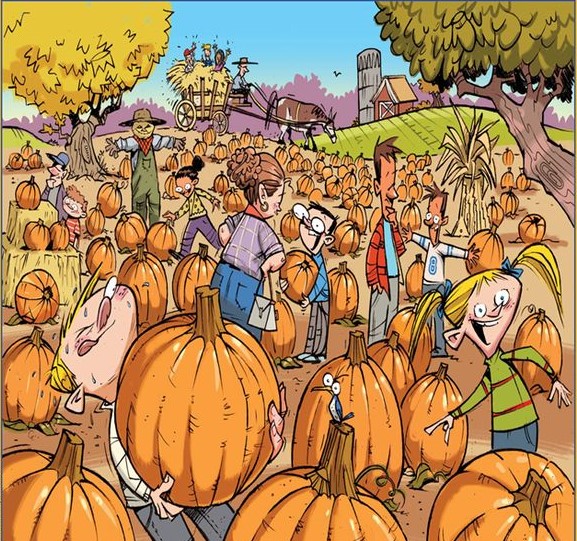 Have kids sketch their favorite pumpkin or funny things they spot—just like this image is filled with oddball fun, real-life pumpkin patches are full of character.