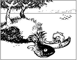 If you said he’s in the giant bird’s mouth, you’re right. Sort of.