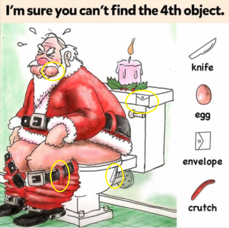 Find Knife, Egg, Envelope, Crutch.