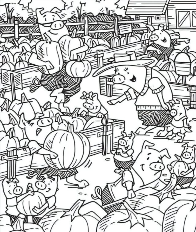 For many families, pumpkin picking is an annual tradition that kicks off the fall season. Families visit local farms, where they get the chance to explore vast fields of pumpkins, choosing the perfect ones for carving or baking. In the picture, we see different generations of the pig family, from the older pigs to the younger ones, all participating in the harvest. This diverse group reflects the importance of bringing together people of all ages to enjoy the harvest.