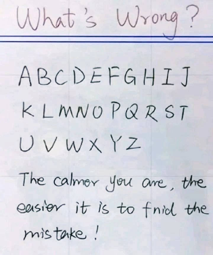 The brain teaser also suggests that ‘the calmer you are, the easier it is to find the mistake.’ You will thus see alphabets from ‘A to Z’ written with the quote mentioned above written with an exclamation mark. Thus, run your mind and run it again, until your 5 seconds are up.
