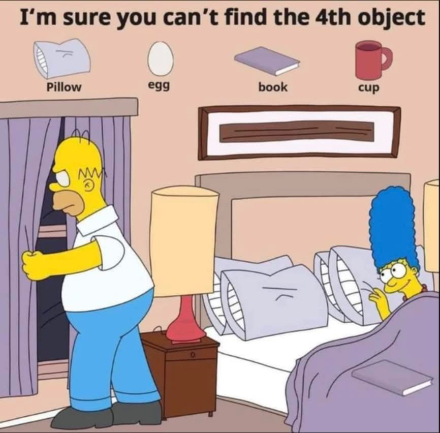 Find Pillow, Egg, Book, Cup.