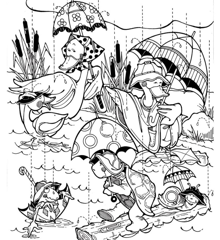 This rainy-day illustration is more than just a drawing—it’s a reminder that beauty and happiness can bloom even in a storm. With its charming cast of ducks, turtles, snails, and ladybugs, it teaches us that a little rain can’t dampen true joy.