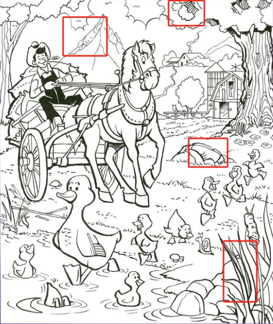 At first glance, this might look like just a simple black-and-white drawing—but don’t be fooled! Hidden within the intricate design are several cleverly concealed objects waiting to be discovered.