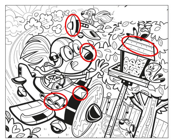 At first glance, this image looks like an animated, lighthearted scene of a flying dog enjoying an adventure in the clouds. The dog is perched in an airplane, soaring high above the ground with a big smile on its face. But as with any great hidden object puzzle, there’s more to this image than meets the eye. The flying dog isn’t alone in the sky. The scene includes airplanes, a birdhouse, flying birds, and various other fun details scattered throughout the environment. The challenge lies in uncovering the hidden objects, all cleverly concealed among the clouds, trees, and background features.