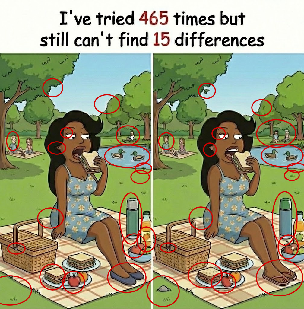 Look closely at the girl’s outfit, hairstyle, facial expression, and the small details around her — the trees, and objects in the background. Some differences are easy to spot, while others are very subtle.