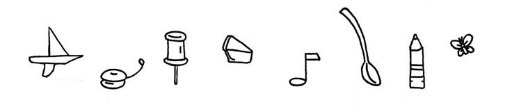 Can you find all the items hidden in this picture: sailboat, yoyo, thumbtack, a slice of pie, musical note, butterfly, ice cream, pencil, spoon.