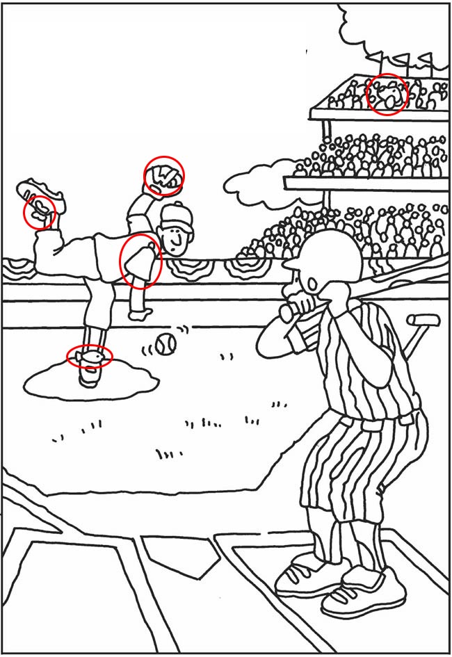 Hidden in the picture are a bell, fish, butterfly, dog’s head and the letter W.