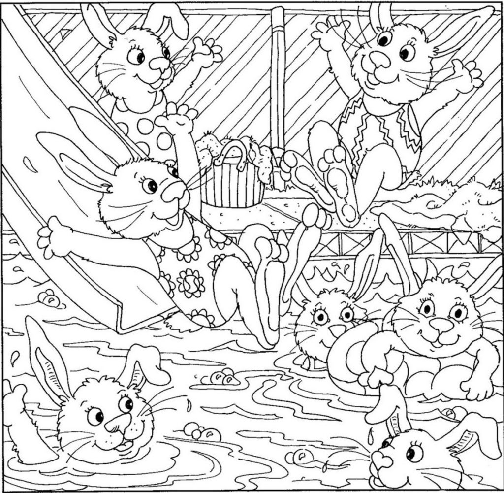 The scene is bright, playful, and packed with charm—bunnies in swimsuits enjoying a lively day at the pool. Some are sliding down water slides, others are floating in inflatable rings, and a few are splashing happily in the water. At first glance, it looks like an ordinary summer cartoon, but don’t be fooled. This picture is actually a hidden object puzzle designed to challenge your focus and reward your curiosity. Every corner hides surprises, from cleverly disguised shapes to tiny details waiting to be discovered.
