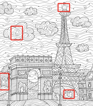 At first glance, this might look like just a simple black-and-white drawing—but don’t be fooled! Hidden within the intricate design are several cleverly concealed objects waiting to be discovered.
