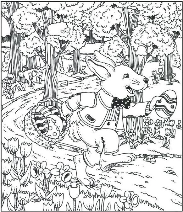 Picture this: A cheerful bunny in a dapper bow tie, hopping joyfully through a sun-dappled forest path with a basket full of colorful Easter eggs. Sounds magical, right? That’s exactly the delightful energy this charming scene radiates. More than just a cute coloring page, this image captures the spirit of Easter—a season of joy, discovery, and renewal.