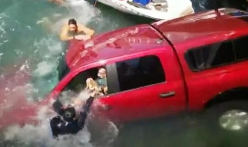 According to CBS News Los Angeles, the people inside the vehicle were composed of a woman, a man, and their pet Chihuahua. The incident was captured by a surveillance camera when the truck accidentally lunged forward – crashing into the railing of the nearby marina and plunging into the water.