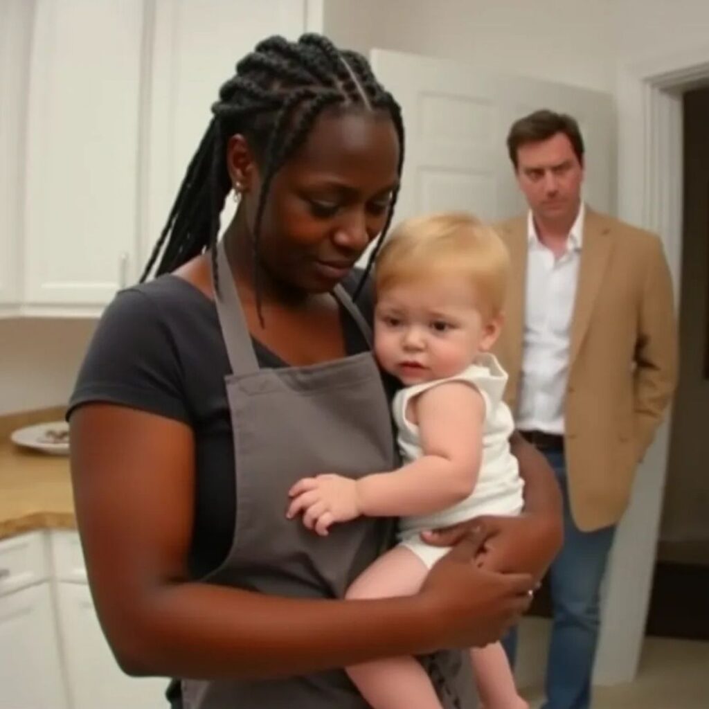 A woman stood at the sink—someone he didn’t recognize. A young Black woman wearing a gray apron tied around her waist, a dark short-sleeved top beneath it. Her hands gripped the edge of the counter. Her head was bowed. Her shoulders shook.