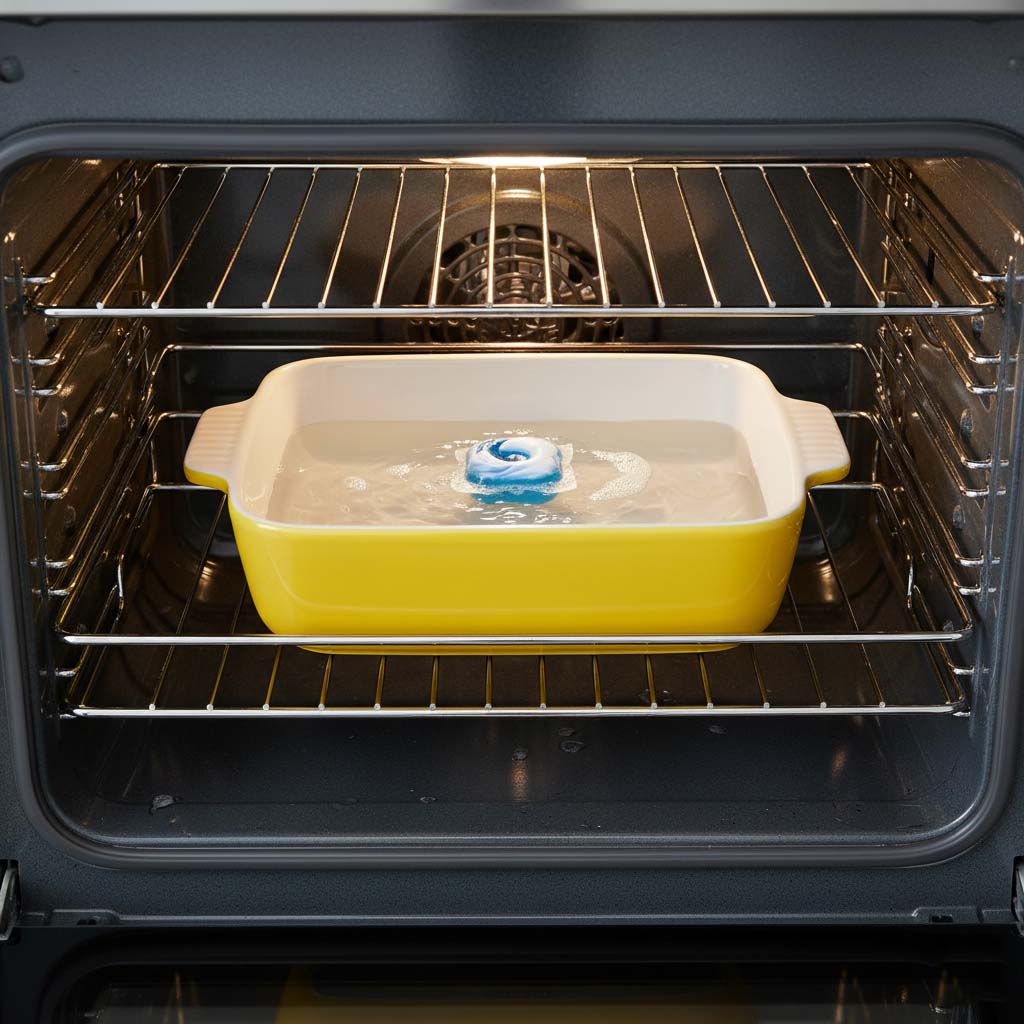 Dishwashing pods contain enzymes and detergents designed to cut through grease and stuck-on food. Combined with the steam, they create a powerful cleaning solution that softens grime and loosens stubborn stains. The result? A sparkling oven, without the need for harsh chemicals or endless scrubbing.