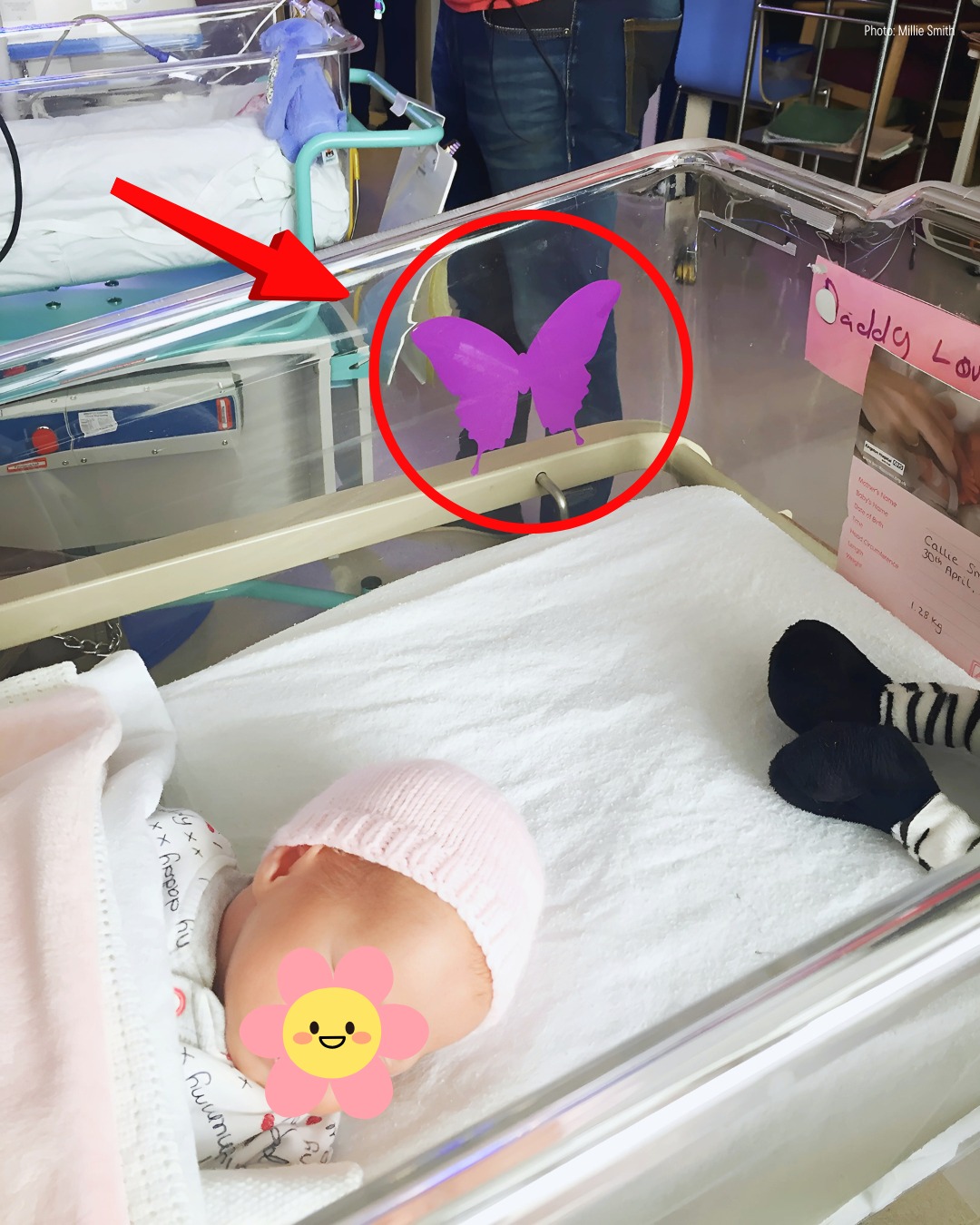 Then, after all this tremendous tragedy, Millie was sent running out of the hospital because of a casual comment from a stranger. It was this moment, however, that gave her the idea to start the Purple Buttery stickers. In the NICU, none of the families around the Smiths knew their story – they didn’t know a simple comment could shatter them the way Millie was shattered. She realized that a simple sticker was enough to tell the story, without grieving families actually having to tell the story over and over.