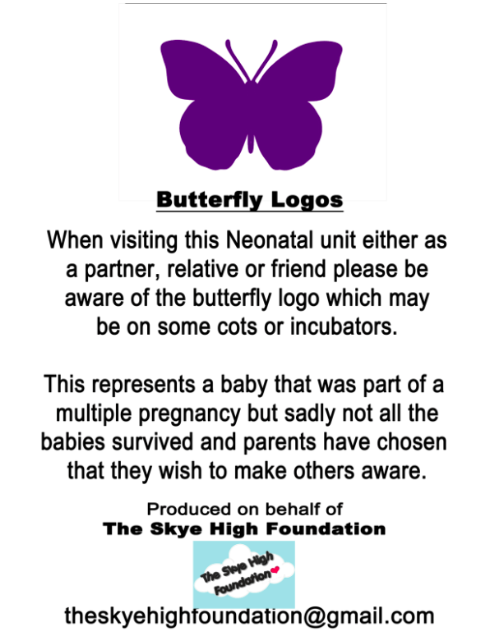 To further spread Skye’s legacy, and help parents cope with the unique experience of infant loss in multiple pregnancies, Smith started the Skye High Foundation. They have raised almost $6,000 to create purple buttery stickers and cot cards for NICU bassinets, as well as purple buttery blankets